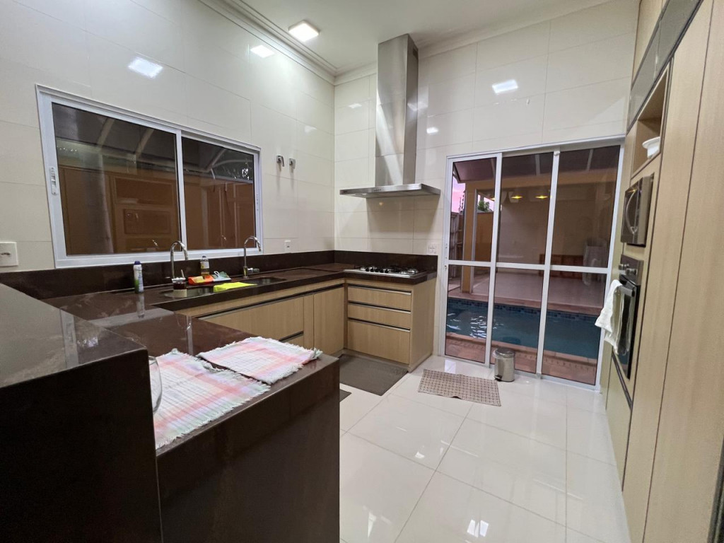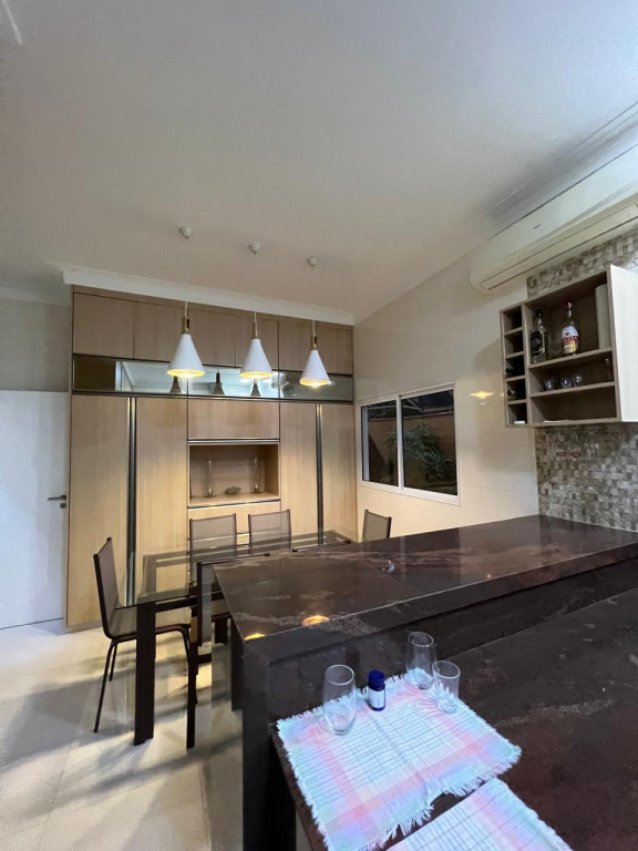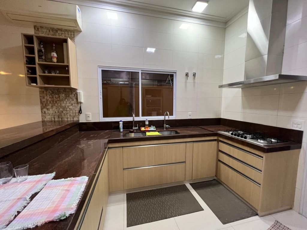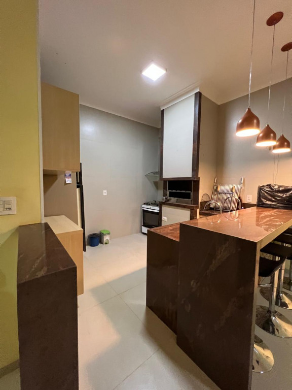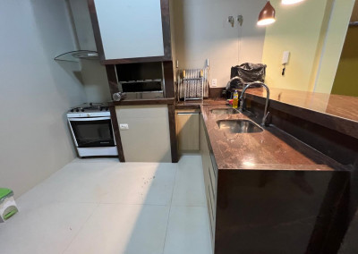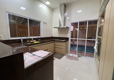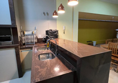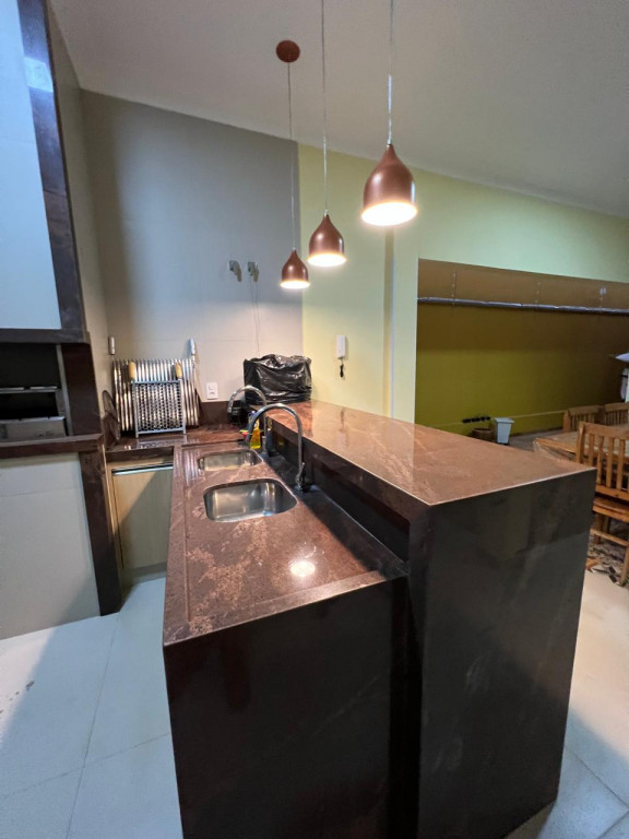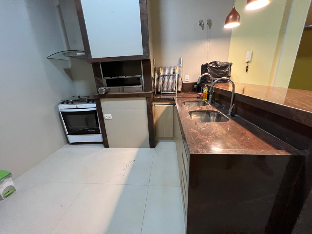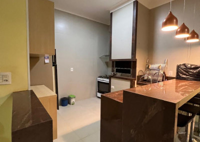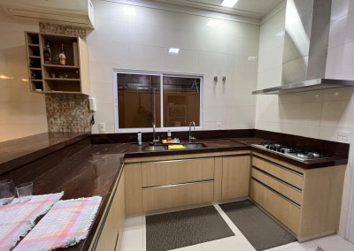Cozinha equipada com armário e bancada em granito marrom