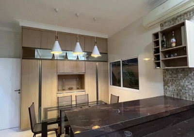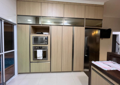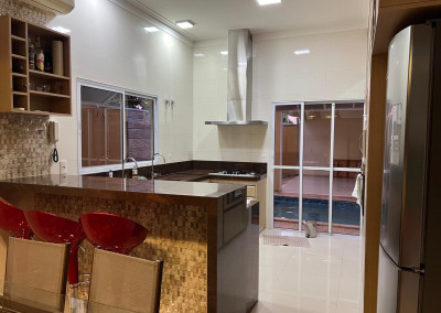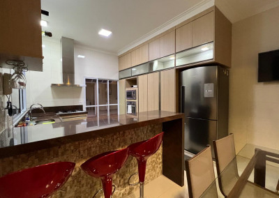 Copa com armários planejados (superior e inferior)