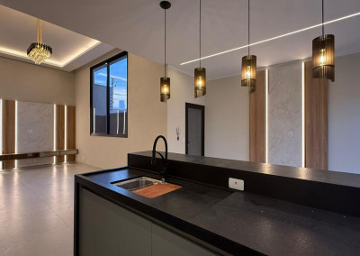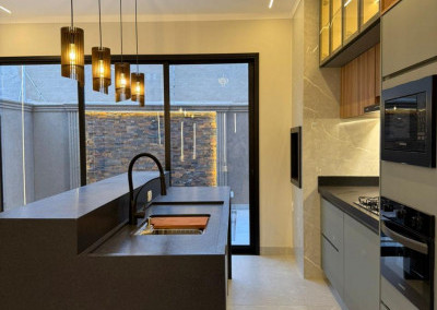 Cozinha Gourmet - Churrasqueira, Ilha, Torneira e Cuba Gourmet, Cooktop, Depurador, Forno e Microondas