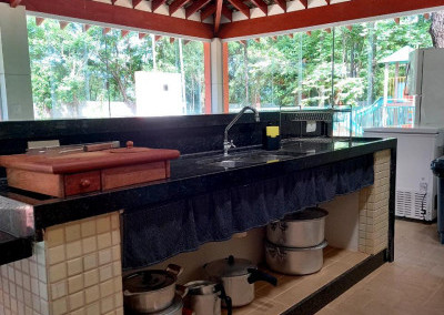 Quiosque de 100 m² com fogão forno a lenha
